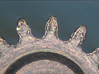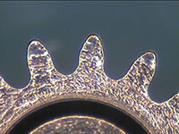 通常の機械部品で在れば、大きな問題とならないような微細バリであるが、微細精密形状加工品の場合、微細バリであっても