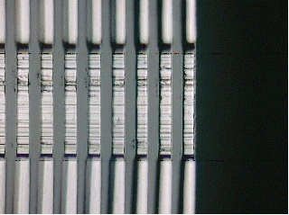 そこに機械加工で溝が加工されている(溝幅200ミクロン 深さ30ミクロン)