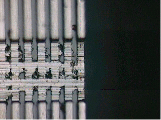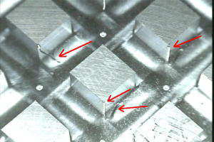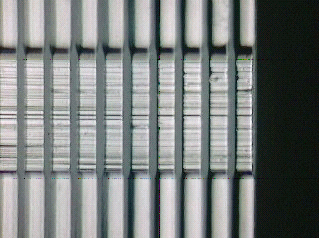 非常に微細な四角形状柱に、研削で溝(溝幅200ミクロン 深さ30ミクロン)加工がなされているが加工条件が合わないと