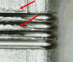 MD処理後 「バリ」や「異物」、小さな「コンタミ」もきれいに無くなっています右写真は、MD処理を施しました。