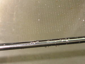 長さ約1.4mのステンレスパイプに、100ミクロン(φ0.1mm)の穴を約500カ所に微細穴加工を行い、しかもクリーンルーム仕様に対応した「パイプ内面完全バリなし仕様」です。